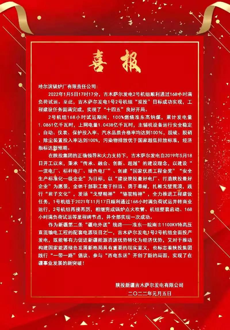 【开门红】新年首投!平博pinnacle官网承制超超临界锅炉机组顺利投入商业运行