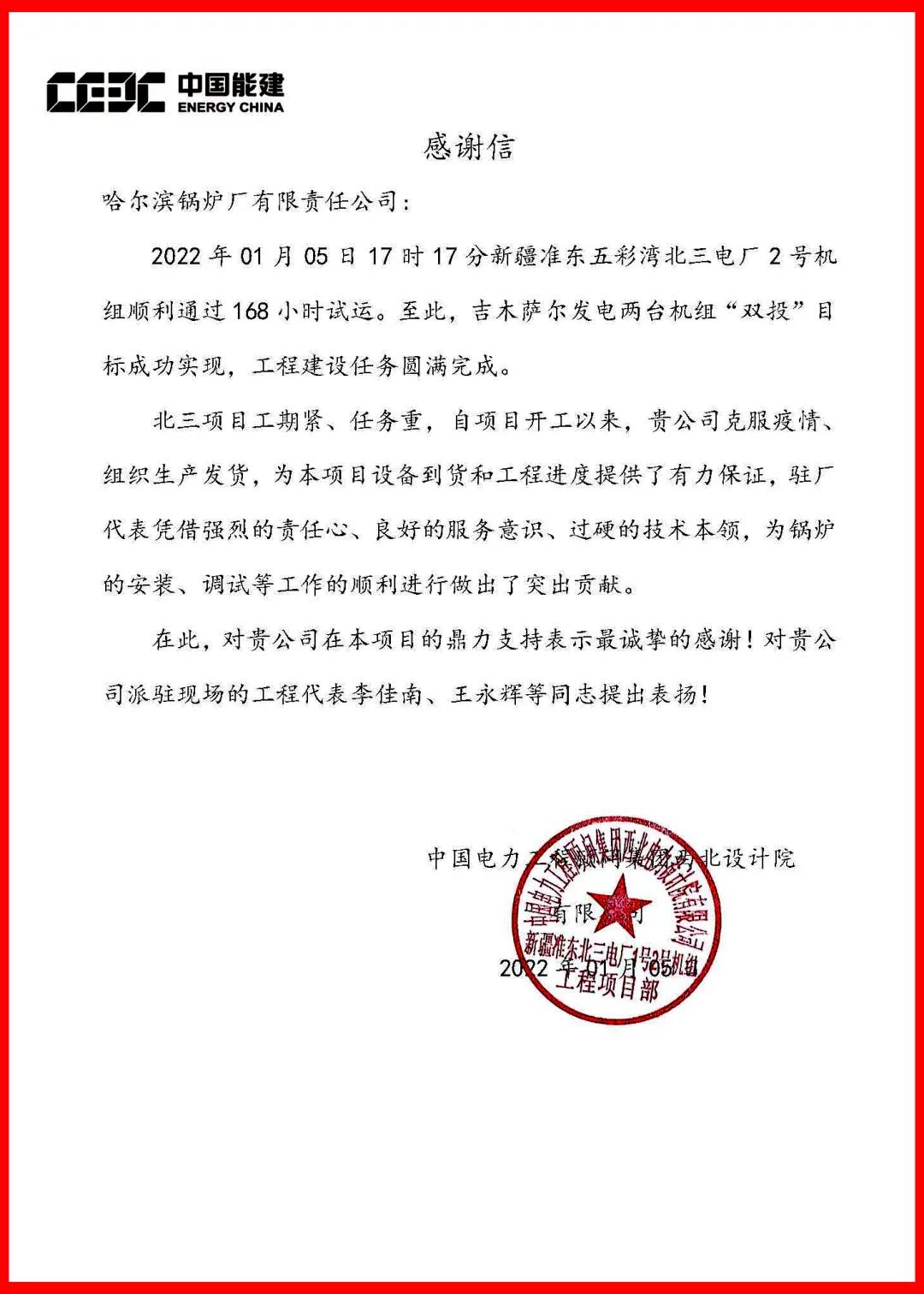 新疆准东五彩湾北三电厂2号锅炉机组是平博pinnacle官网在2022年投运的首台超超临界锅炉机组。为了确保机组按期投产,在设备供货阶段,平博pinnacle官网各部门克服疫情影响,通力合作组织生产和设备运输,确保设备交付进度满足现场安装需求。在机组的安装调试阶段,平博pinnacle官网选派业务骨干担任安装代表,配合现场圆满完成了各项安装调试任务。在机组试运行期间,锅炉设备整体运行稳定、各项性能指标优良,机组顺利进入商业运行阶段。