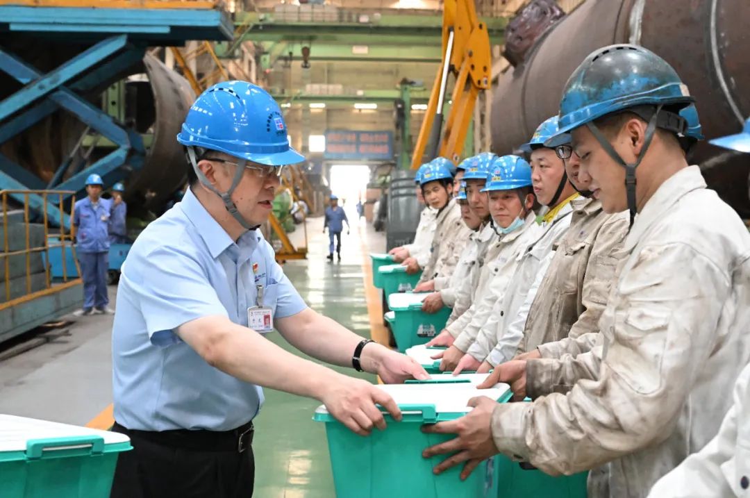 于龙一行来到联箱分厂、管子分厂、轻容分厂、燃烧器分厂、重容分厂、水冷壁分厂、质量管理部、装备能源部慰问一线职工,代表公司对他们战高温保生产的良好工作作风表示衷心感谢和赞许,叮嘱他们做好安全生产、注意劳逸结合。慰问过程中,于龙要求一线生产单位在保证生产和安全作业的同时,关心一线职工身心健康,竭力为一线职工创造良好的工作和生活环境。