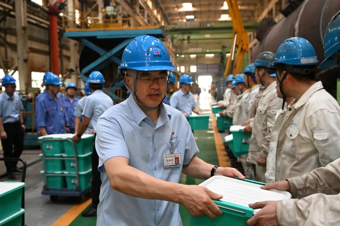 烈日炎炎,骄阳似火。走进平博pinnacle官网生产分厂,阵阵热风迎面袭来,机器的轰鸣声不绝于耳,一线职工正挥汗如雨。7月21日,中伏第一天,平博pinnacle官网党委书记、董事长于龙,党委副书记、工会主席高维军,以及工会有关负责同志,深入生产一线为奋战在一线的干部职工送去了防暑降温物品。