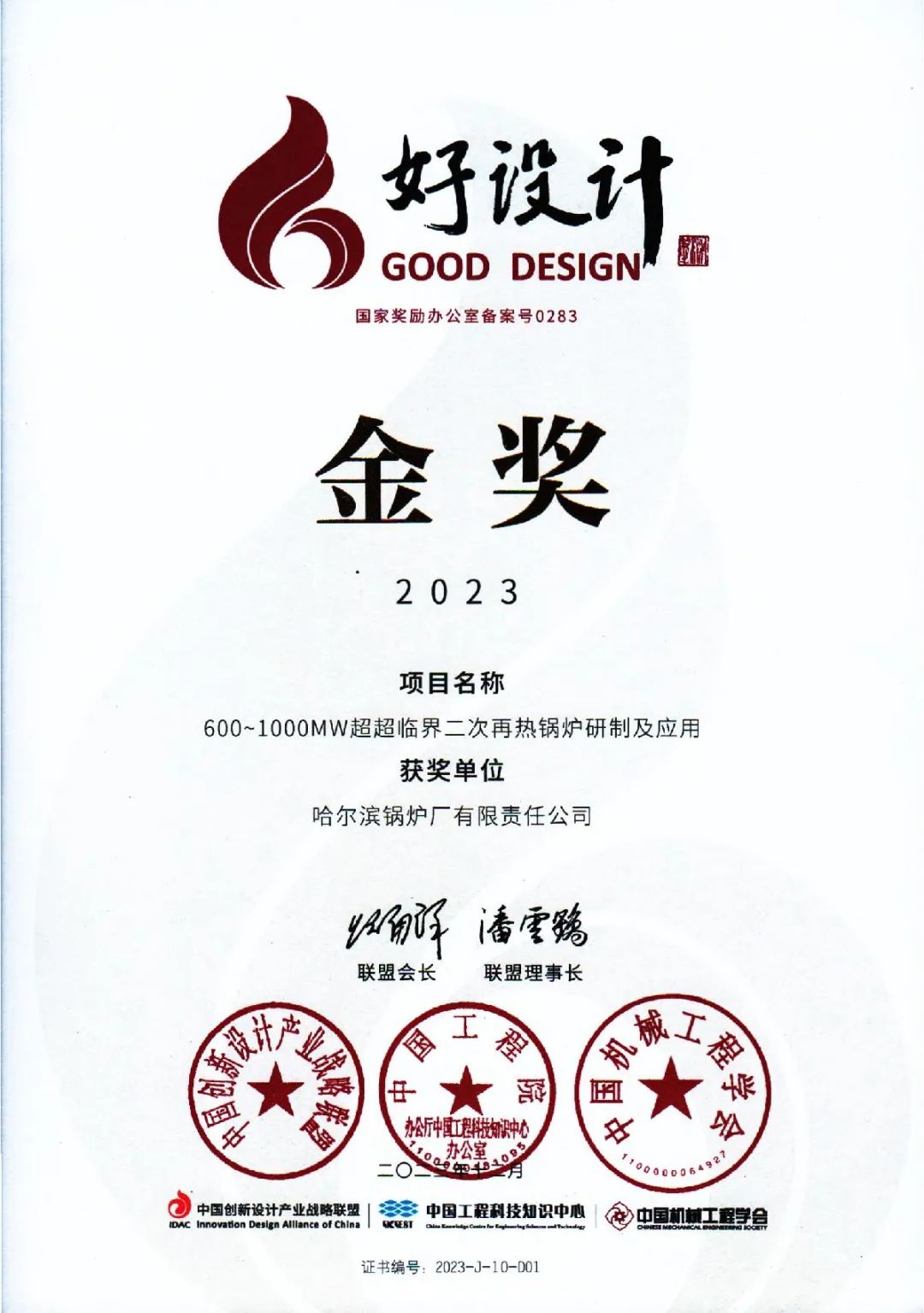 发布时间:2023-12-04日前,2023中国创新设计大会暨好设计颁奖大会公布了中国好设计金奖名单,平博pinnacle官网研发的“600-1000MW超超临界二次再热锅炉研制及应用”项目成功登榜。